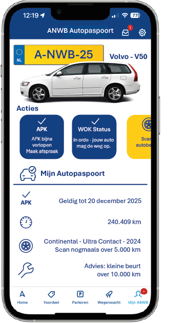 Met het ANWB Autopaspoort heb je al je gegevens van jouw auto op een handige plek bij elkaar! Afmeting, gewicht maar ook de actuele waarde van je auto en de laatste datum van de keuring. En je ontvangt een seintje wanneer jouw auto weer opnieuw moet worden gekeurd. Handig!